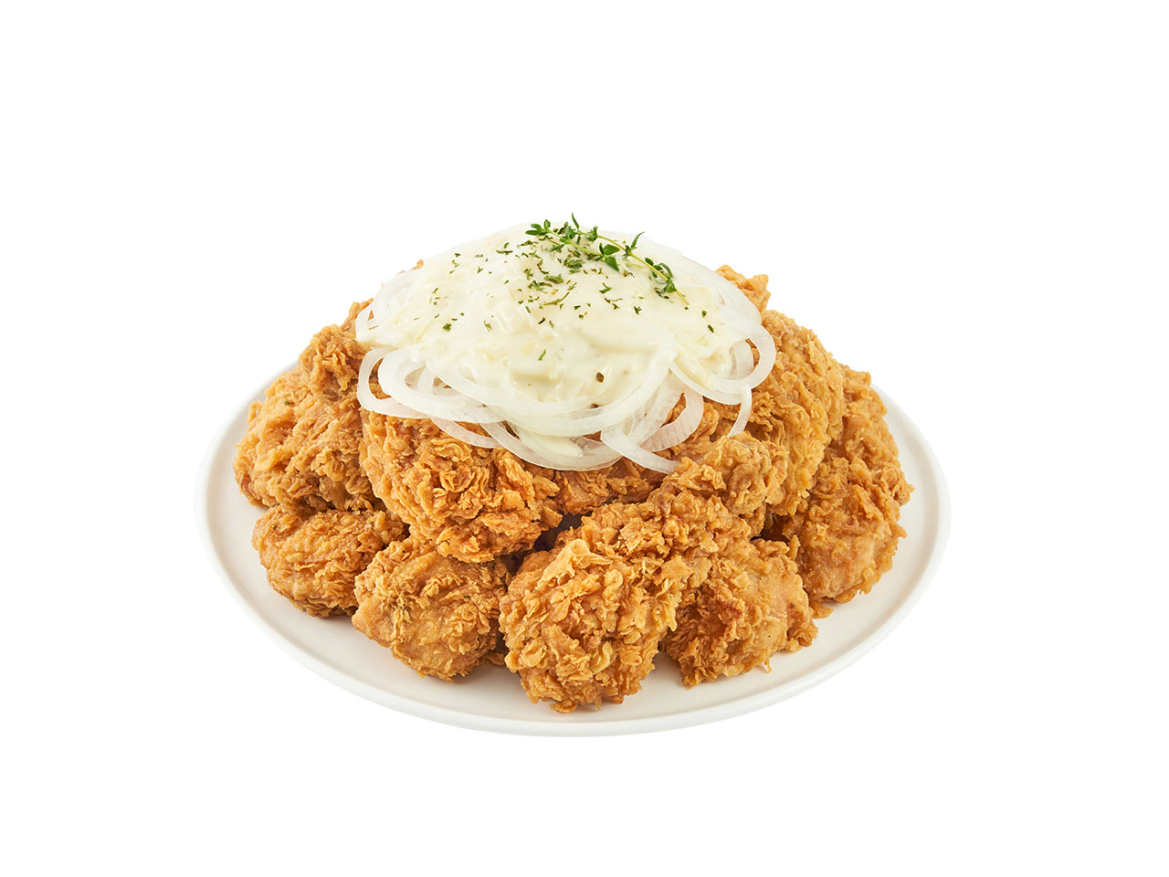 신선한 양파 바삭한 치킨을 함께, 크리미어니언!